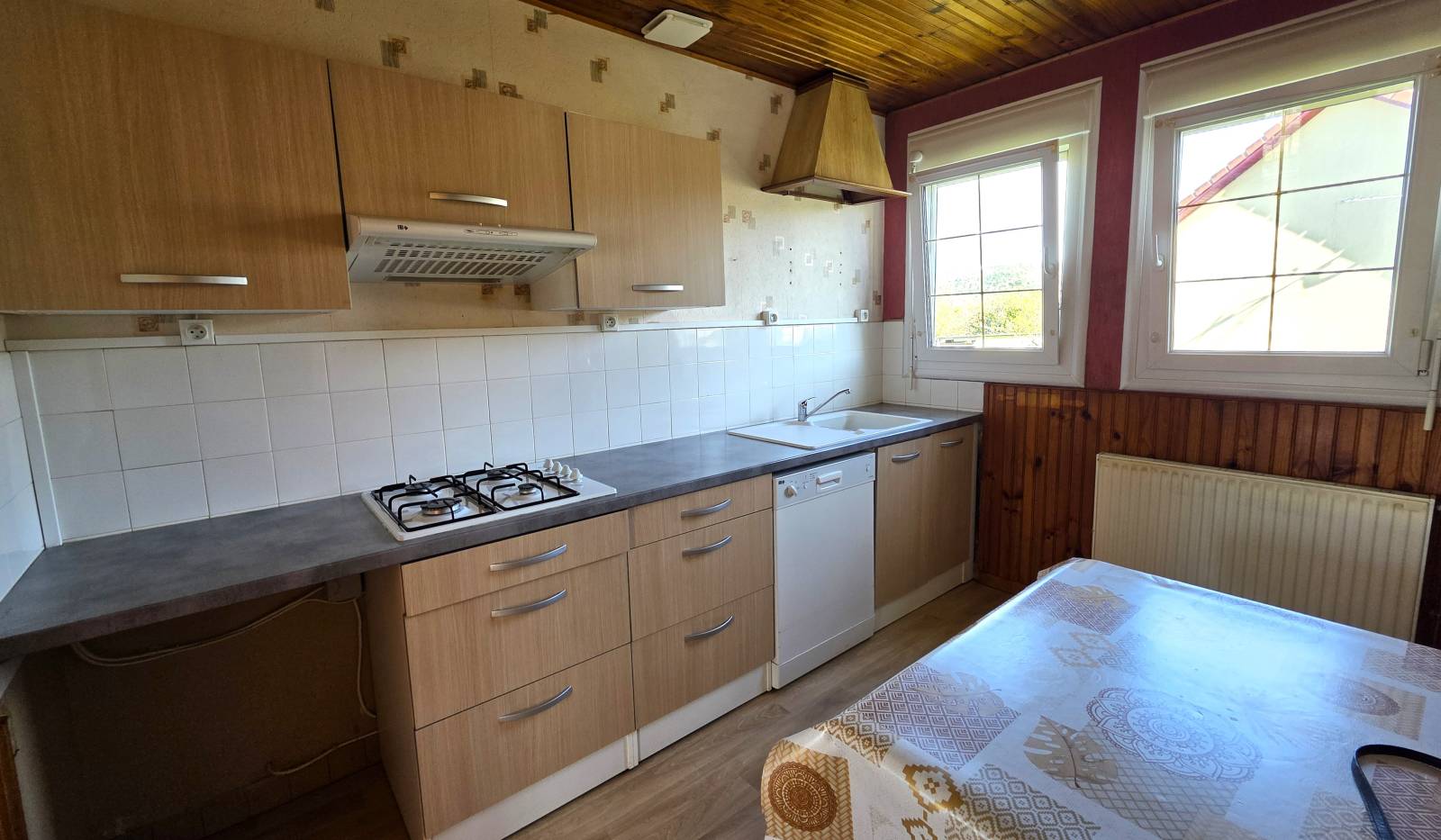 Maison lumineuse et au calme, à rénover entièrement, équipée de double vitrage avec volets roulants et d’un chauffage individuel au fuel.