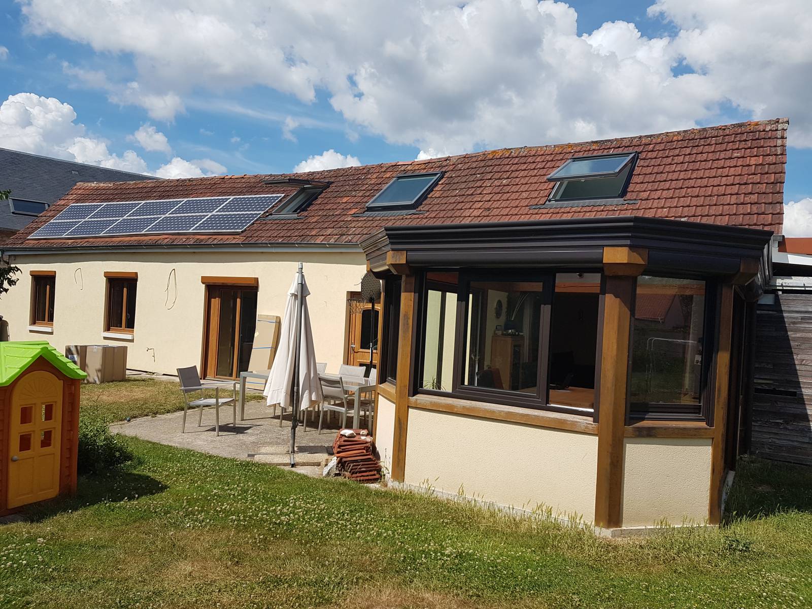 La maison comprend donc 3 chambres et un bureau.