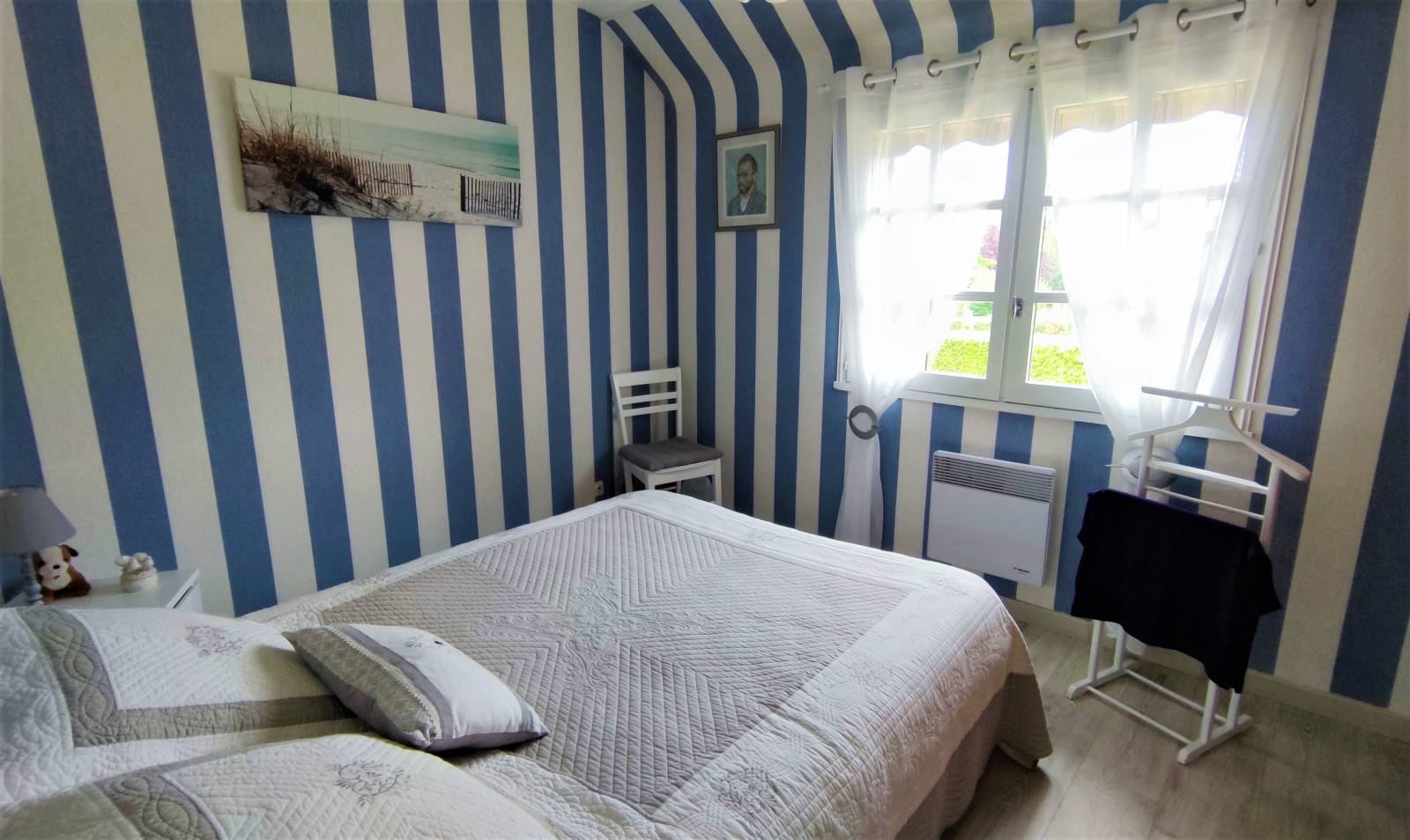 Au 1er étage : Un pallier desservant 2 chambres, un bureau servant actuellement de chambre avec une salle de bains et des WC .