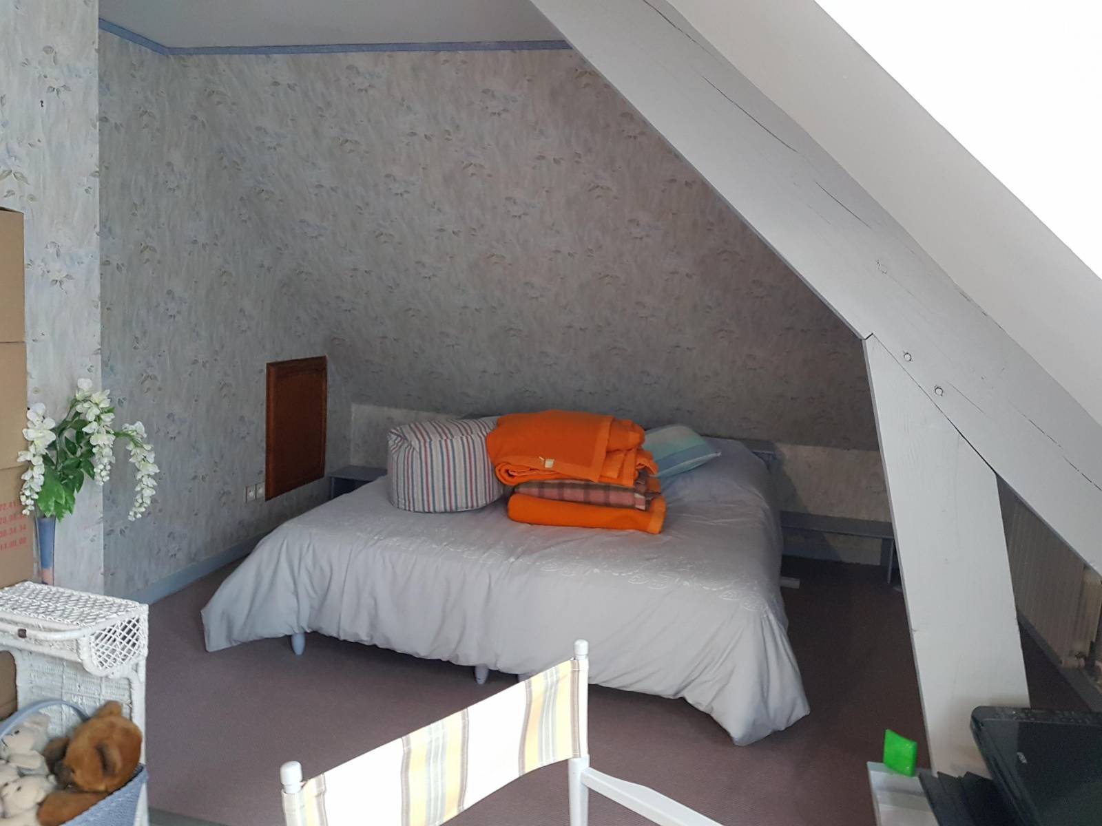 Chambre avec salle de bains et wc.