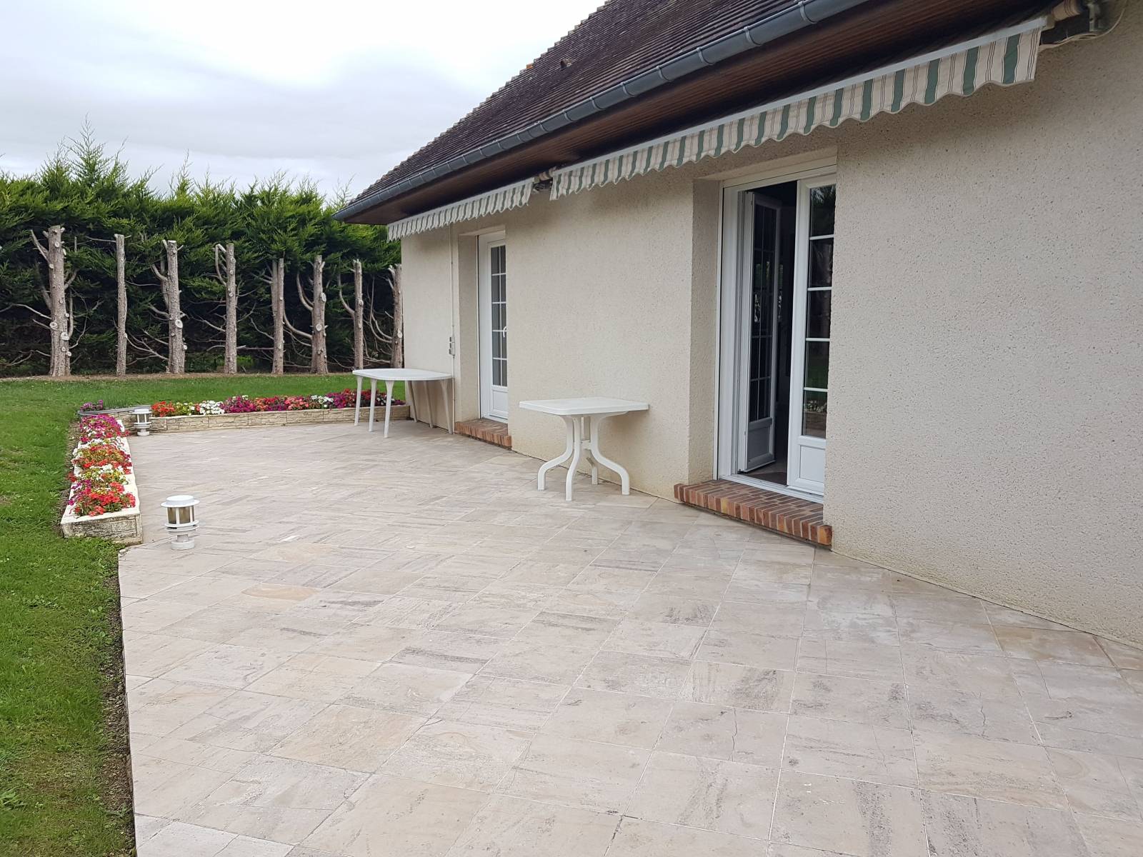 Grande terrasse avec 2 stores.